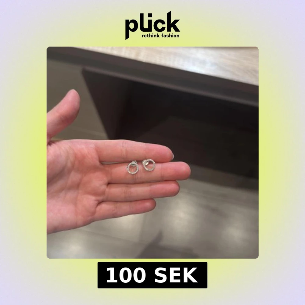 Säljer ett par små, cirkelformade örhängen i silverfärg med glittrande stenar runt hela ringen. Perfekta för dig som gillar stilrena men ändå iögonfallande smycken. Sätts fast med klassisk stift och lås.