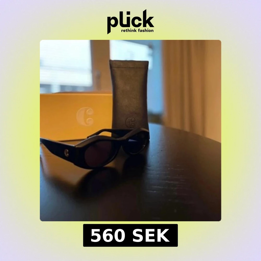 Snygga svarta solglasögon med tjock båge och rundade glas. Kommer med originalfodral och box. Perfekt för både sommar & höst 🍂