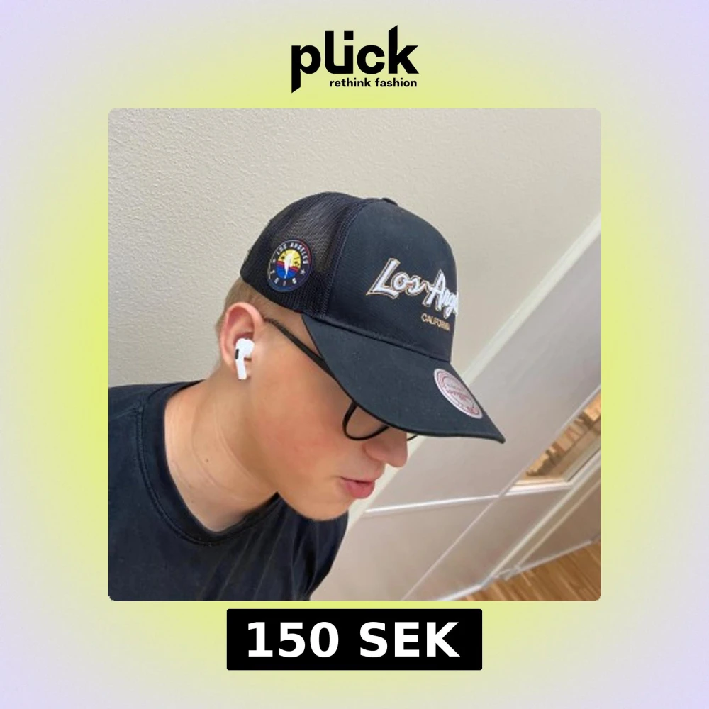 Snygg svart keps från Mitchell & Ness med broderad Los Angeles-text framtill och justerbar snapback baktill. Kepsen har nät på sidorna och baktill och flera broderade patches, bland annat NBA-logga och färgglad Los Angeles-patch. Skärmen är grön undertill. Kepsen är dock lite solblekt vilket du ser på sista bilden men syns inte sålänge klistermärkerna sitter kvar.