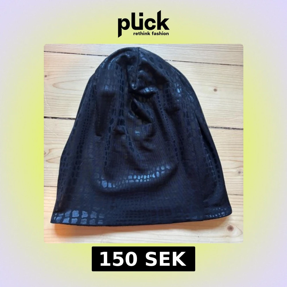 Cool svart mössa med glansigt ormskinnsmönster. Tunn och mjuk, perfekt för att ge din outfit en edgy touch. Passar både tjejer och killar.