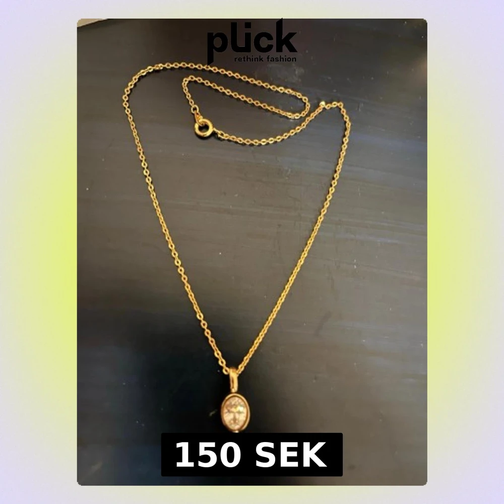 Hej, säljer en elegant halsband, obs att kedjan är gulpareead stål men hänge är guldfärgad stål.