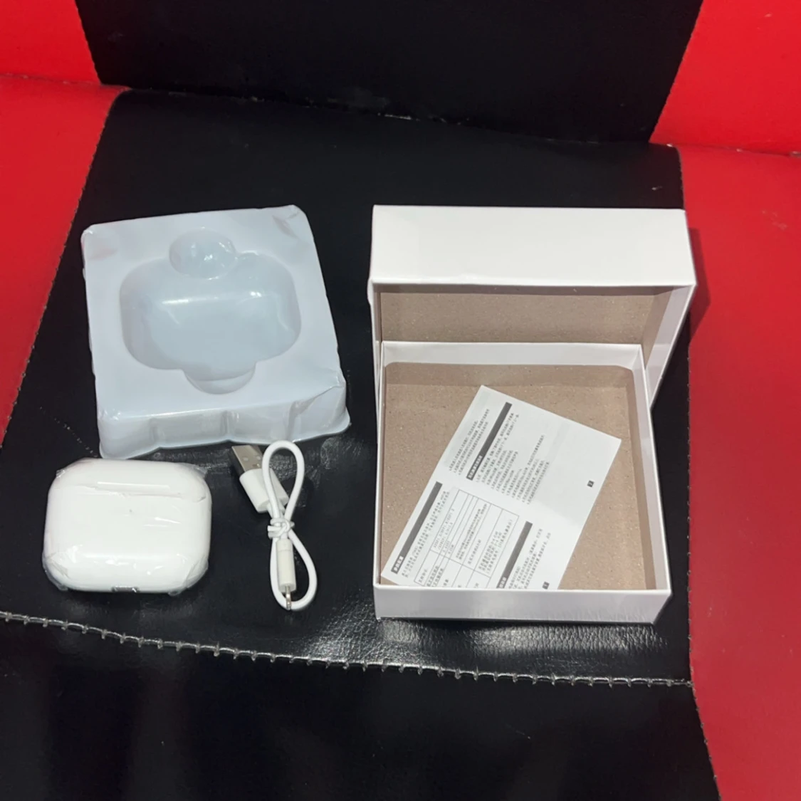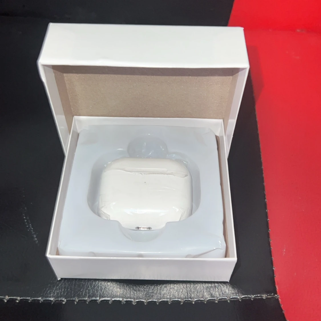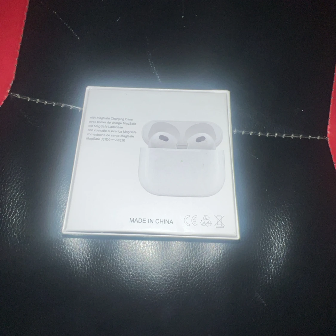 Säljer ett par trådlösa hörlurar med MagSafe-laddningsetui. Hörlurarna är vita och kommer i originalförpackning med laddningskabel och manual. Perfekt för musik och samtal med hög ljudkvalitet.