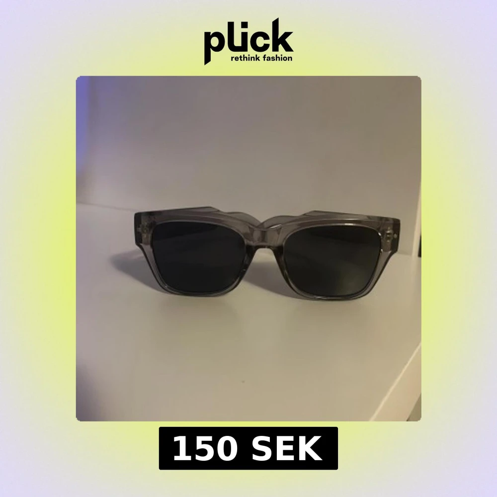 Snygga gråa solglasögon med rektangulära svarta glas. Knappt använd!