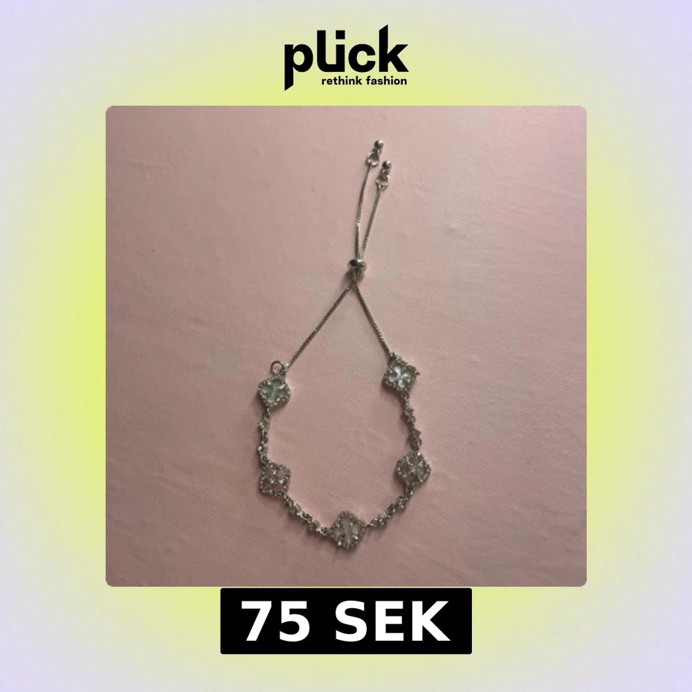 Ett stilrent armband i silverfärg med fem fyrkantiga länkar, var och en dekorerad med ett blommönster och små gnistrande stenar. Justerbar kedja med kulor för perfekt passform. Perfekt accessoar för att lyfta din outfit.