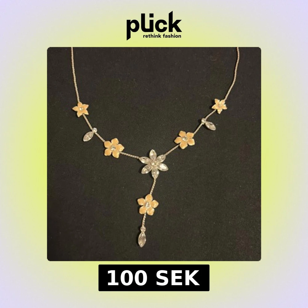 Supersött halsband med små blommor i guldton och glittriga silverdetaljer. Blommorna har en kristall i mitten och halsbandet har en elegant Y-formad design med extra hängande blomma och kristall. Perfekt för att ge din outfit en romantisk touch.