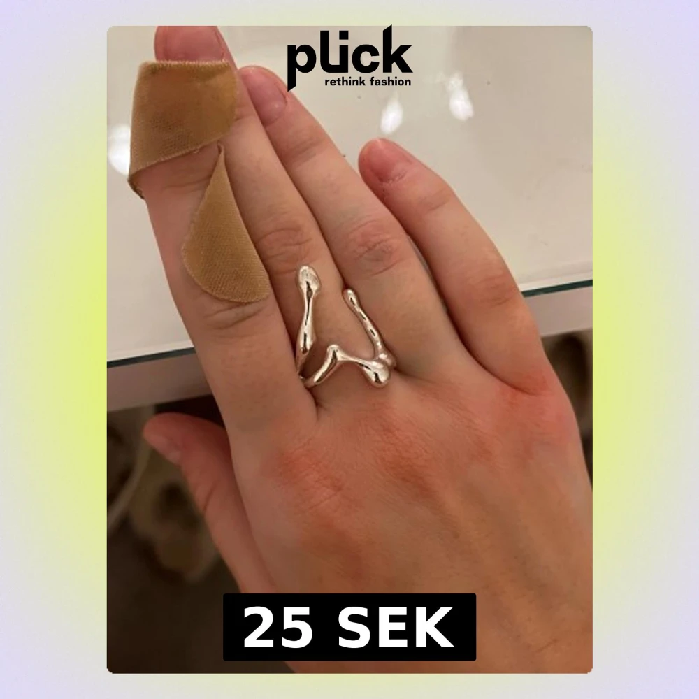 Unik och chunky statementring i silverfärgad metall med organiskt, böljande och oregelbundet formad design. Ringen är öppen och justerbar, vilket gör den enkel att anpassa efter fingerstorlek. Perfekt för dig som gillar trendiga och iögonfallande accessoarer.