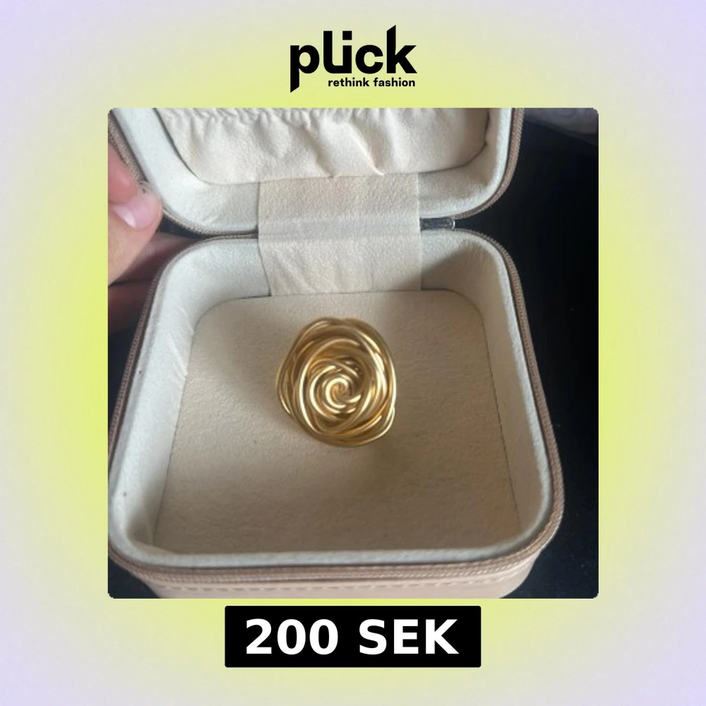 Säljer en unik och iögonfallande ring i bronstonad metall med spiralformad design som påminner om en ros. Perfekt statement piece för dig som vill sticka ut med dina accessoarer. Den är köpt i Spanien en butik som jag inte vet namnet på