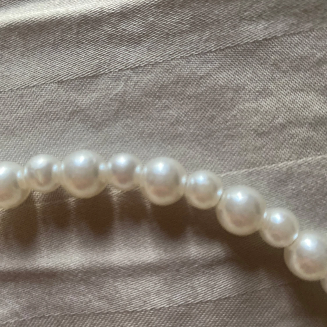 Snyggt diadem med glansiga vita pärlor i olika storlekar. Perfekt accessoar för att ge en elegant touch till din look. Diademet är böjt och sitter bekvämt på huvudet. Passar till både utsläppt och uppsatt hår.