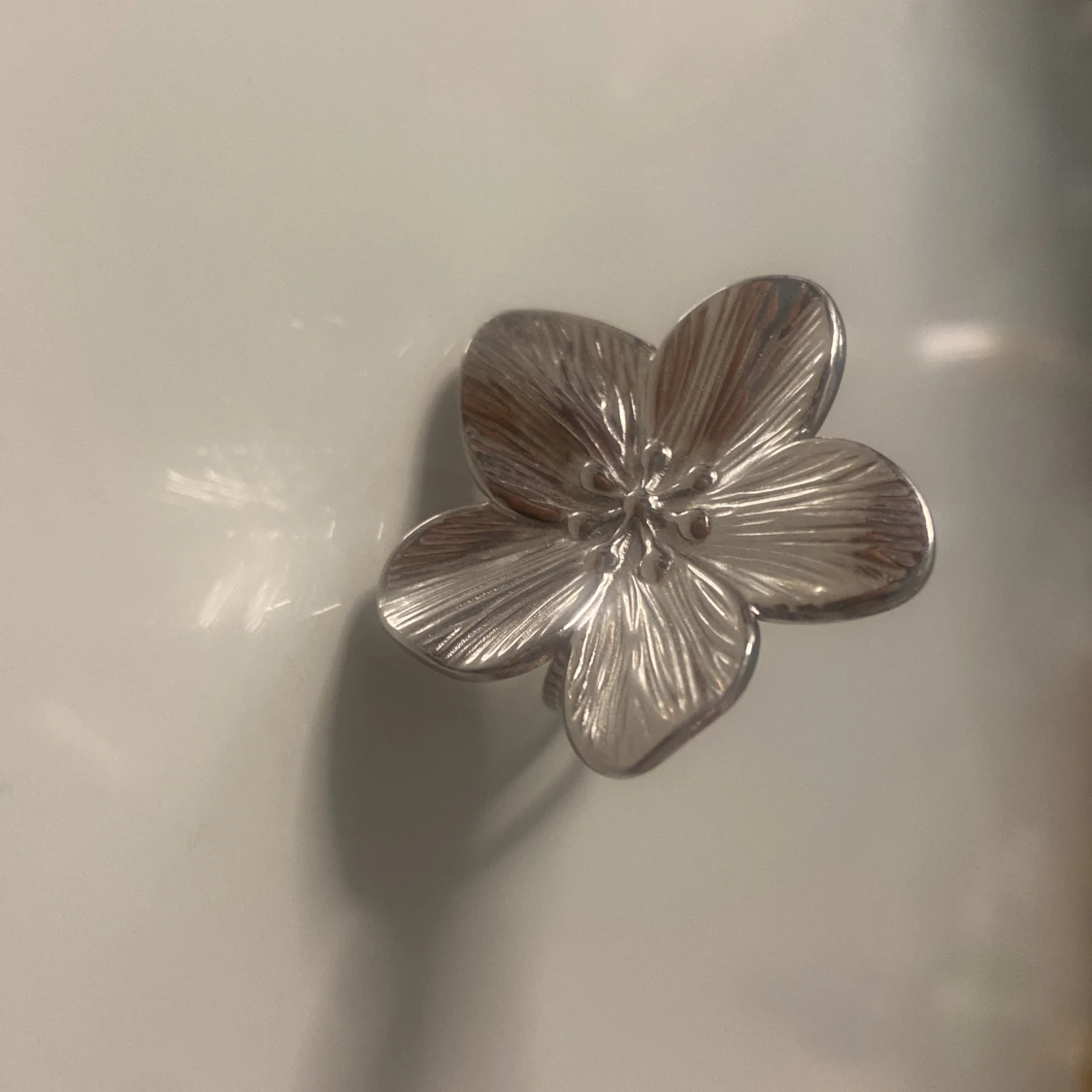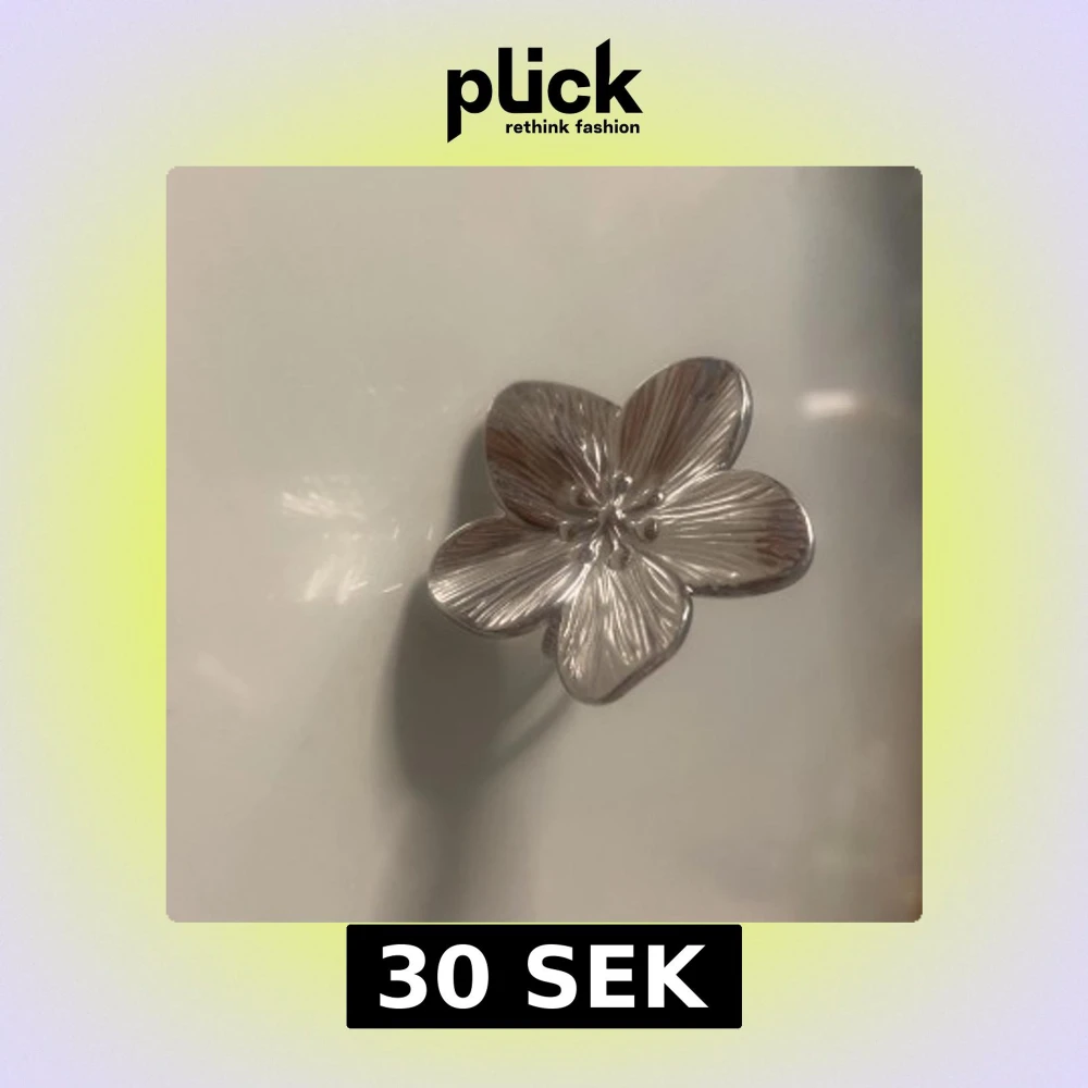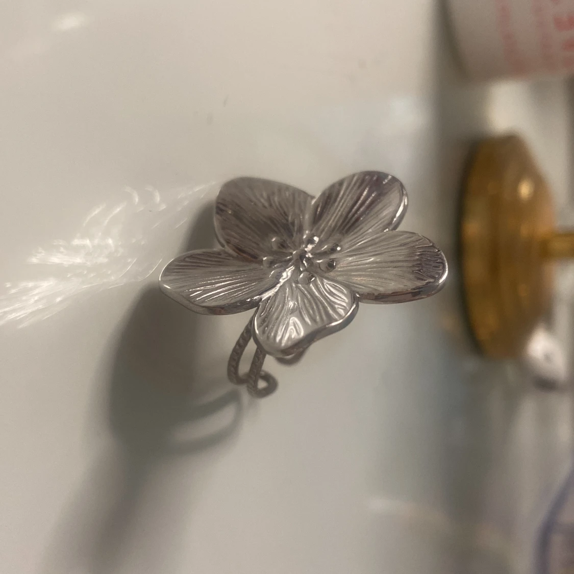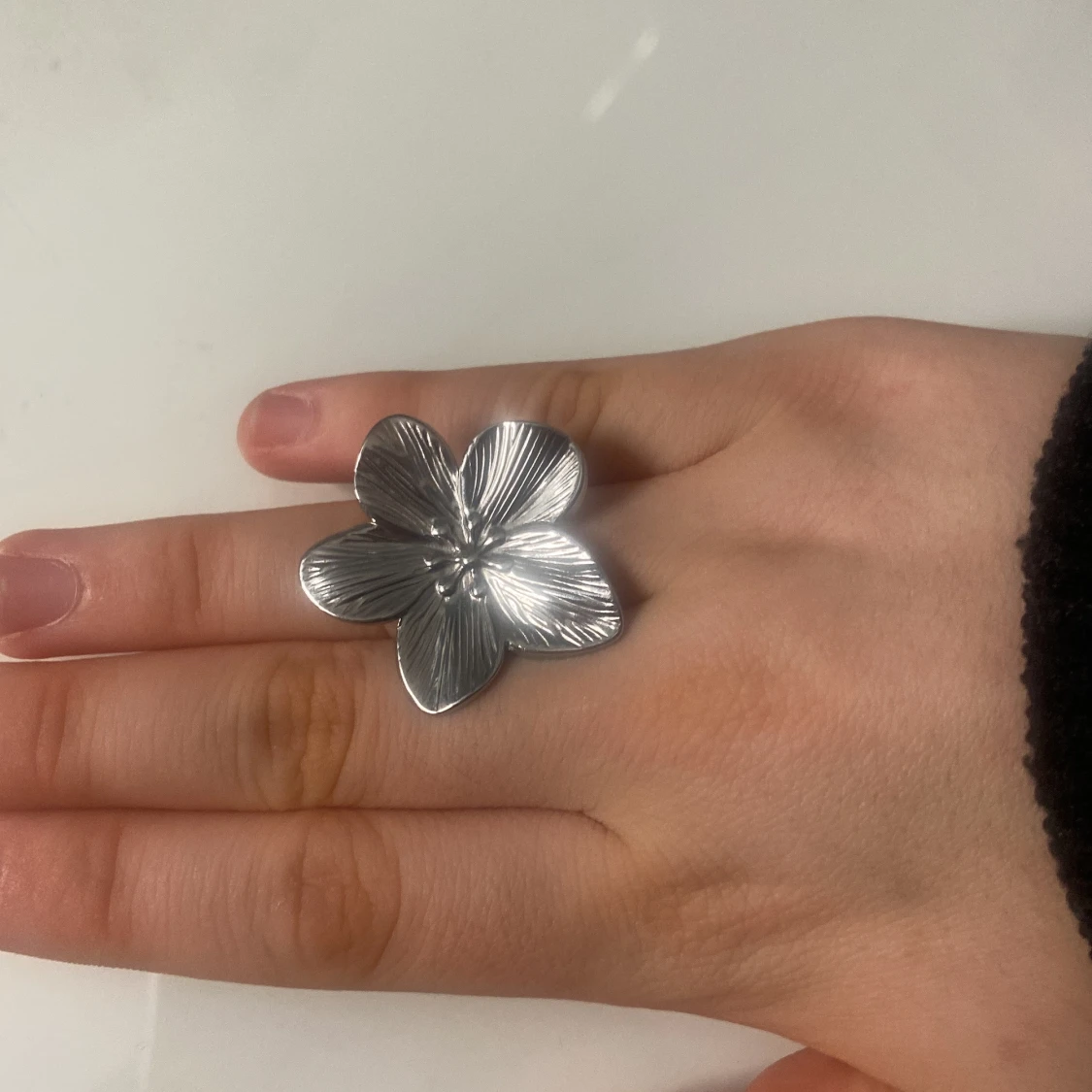 Elegant ring i form av en blomma med fem kronblad i silverfärg. Perfekt för att ge en stilren och naturlig touch till din outfit. Köpt på marknad i Spanien💞🌸