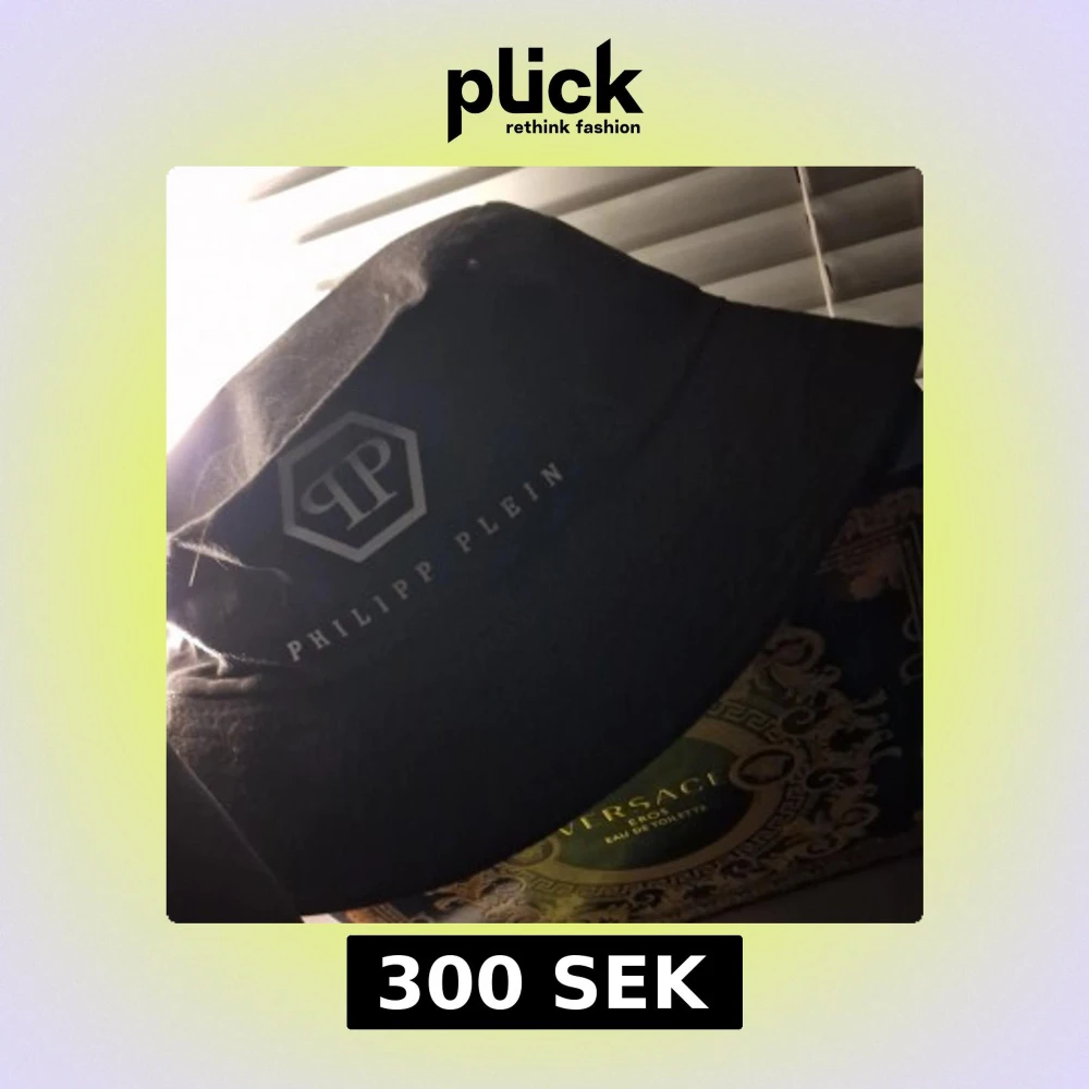 Svart bucket hat med Philipp Plein-logga tryckt på sidan. Klassisk form och stilren design, perfekt för att lyfta din outfit med en exklusiv touch.