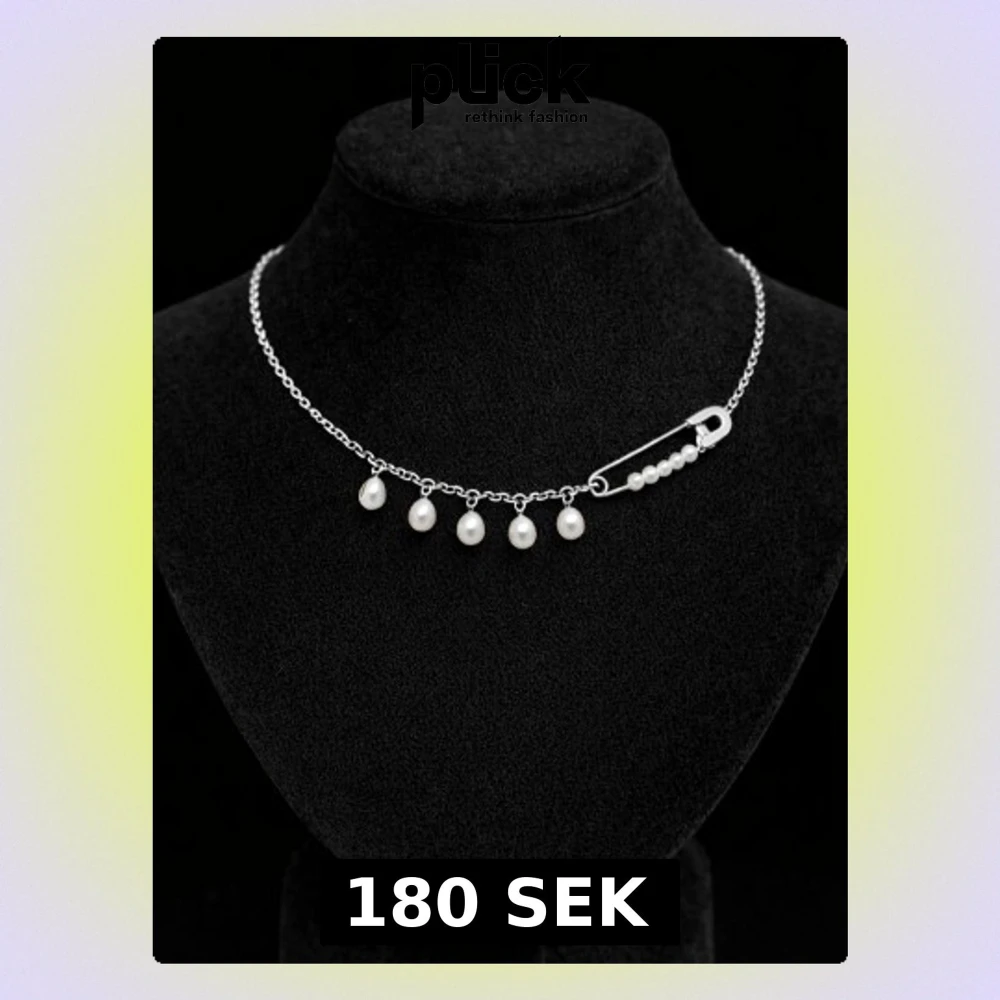 Silverhalsband med pärlor och säkerhetsnål