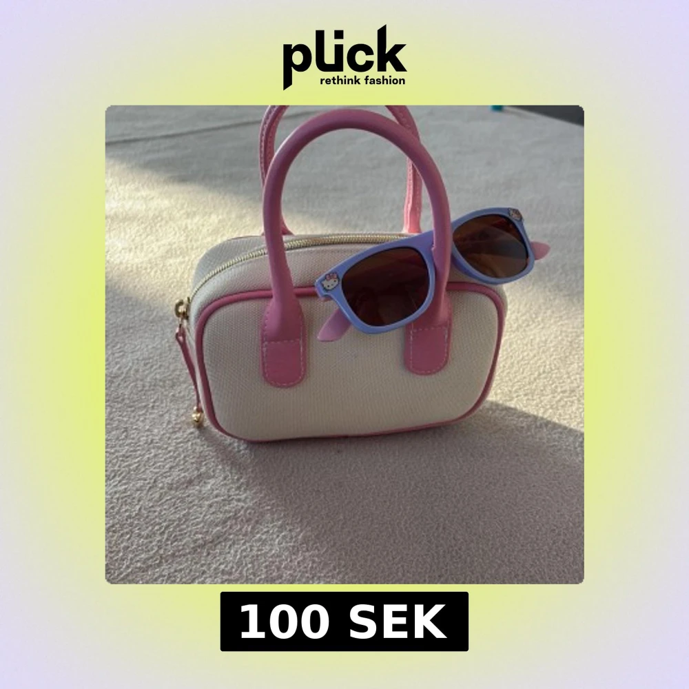 Snygga Hello Kitty solglasögon med blå bågar och rosa detaljer. Perfekta för att ge en lekfull touch till din stil. Glasögonen har en söt Hello Kitty-logga och hjärtan på skalmarna.
