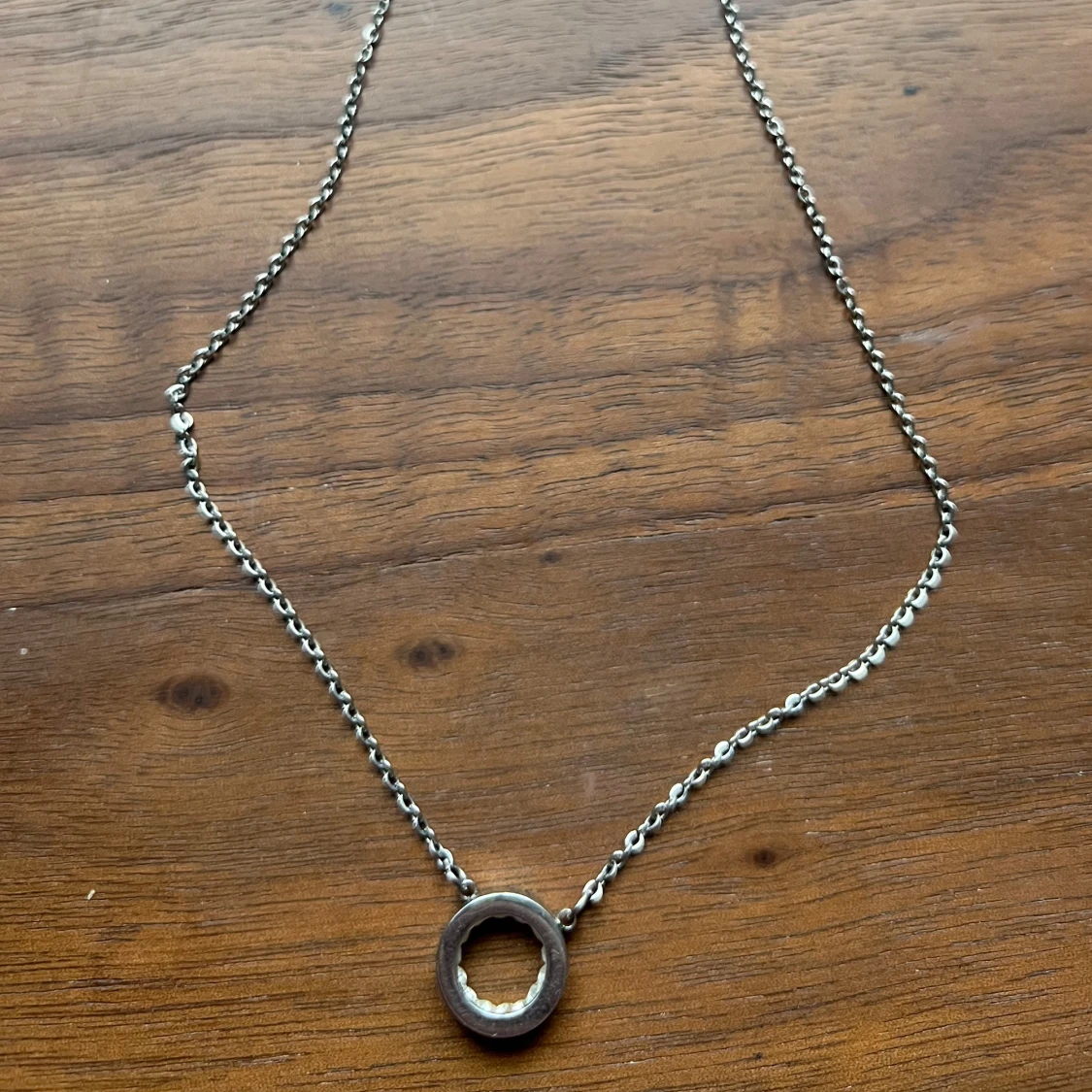 Silver halsband med en enkel cirkelberlock med stenar inuti från Edblad🩷🩷