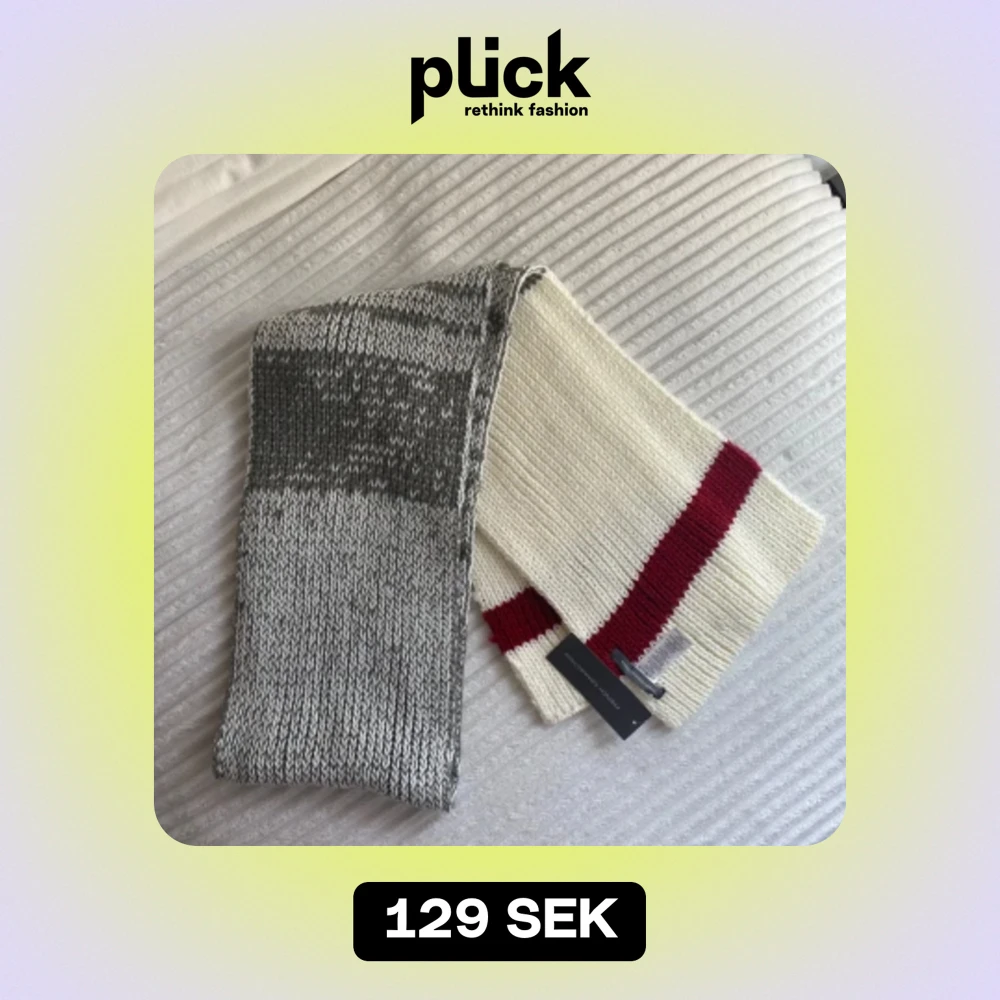 Helt ny stickad halsduk i rött och vitt. Så fin kvalité!