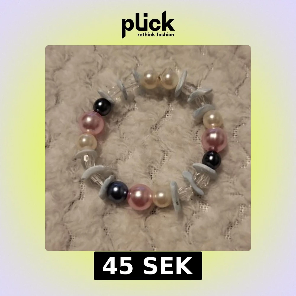 Charmigt armband med pärlor i olika färger som rosa, blå och vit. Armbandet har även genomskinliga och ljusblå detaljer som ger det en lekfull touch. Perfekt för att liva upp vilken outfit som helst!