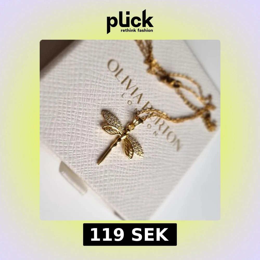 Supersnyggt halsband med ett guldfärgat trollsländehänge. Vingarna är dekorerade med små glittrande stenar som ger extra bling. Kedjan är tunn och elegant, perfekt för att lyfta vilken outfit som helst. Lådan ingår ej.