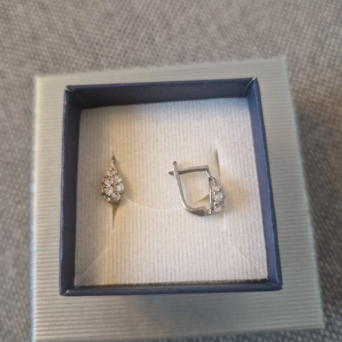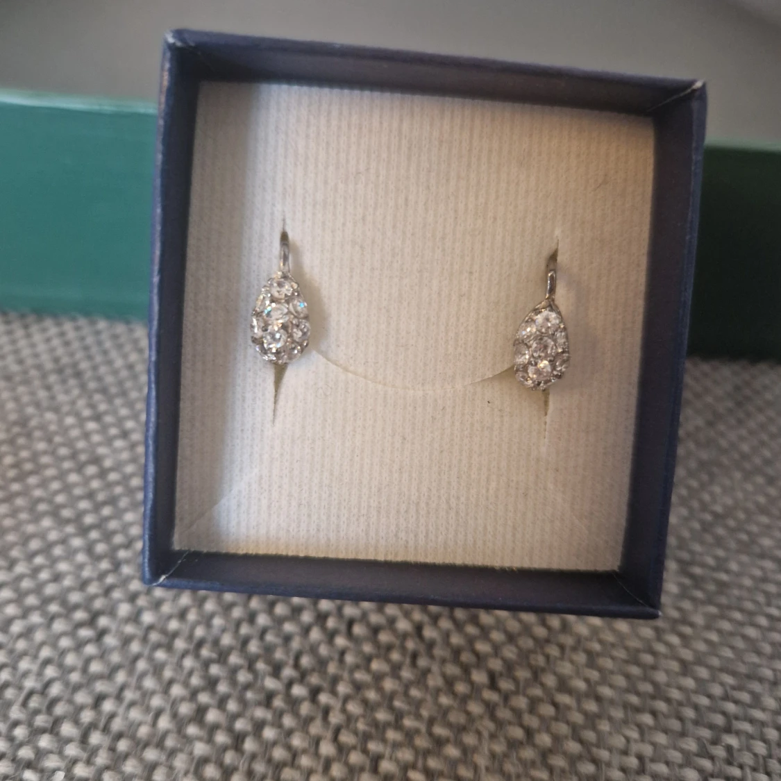 Säljer ett par eleganta örhängen i silver med glittrande stenar. De har en droppformad design och kommer i en fin presentask. Perfekta för att ge en touch av glamour till vilken outfit som helst!