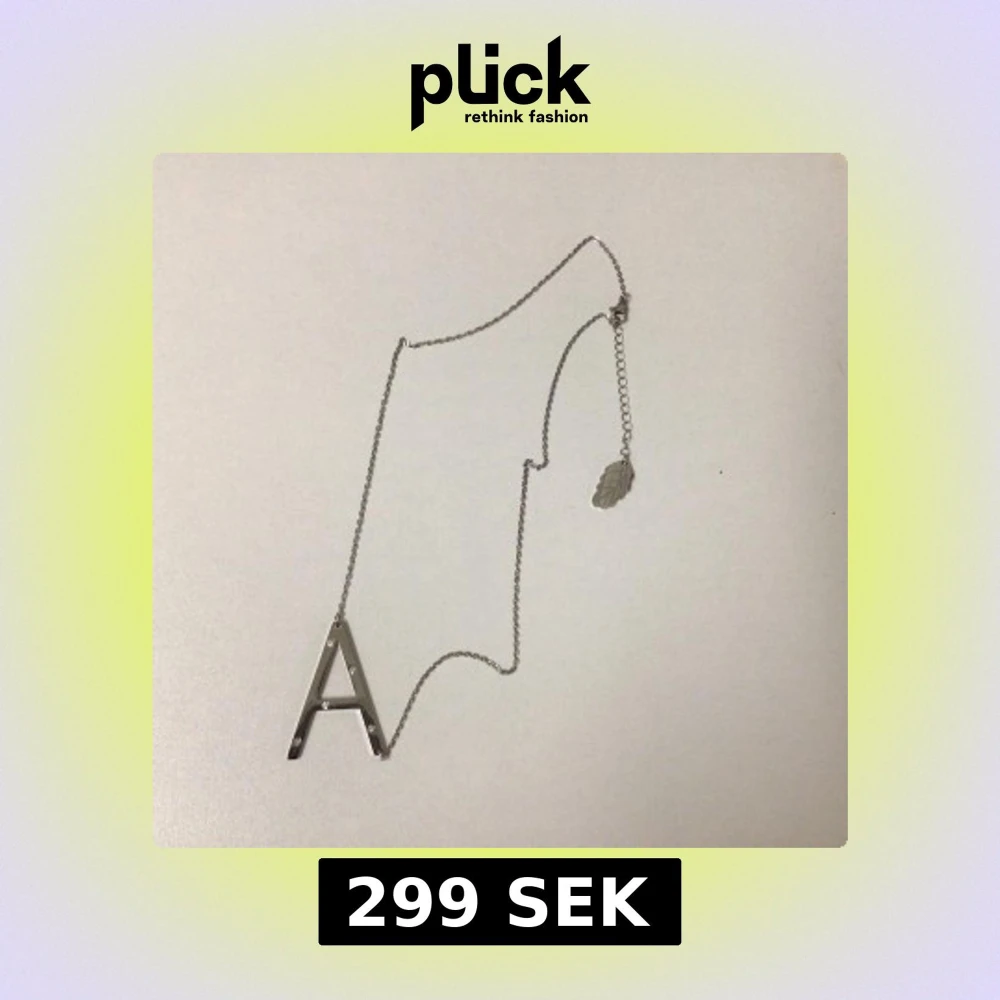 Stilrent halsband i silverfärgad metall från ioaku med en stor bokstav A som hänge, dekorerad med små glittriga stenar. Kedjan har en liten berlock i form av ett löv med loggan ingraverad. Perfekt för dig som vill ha ett personligt smycke.