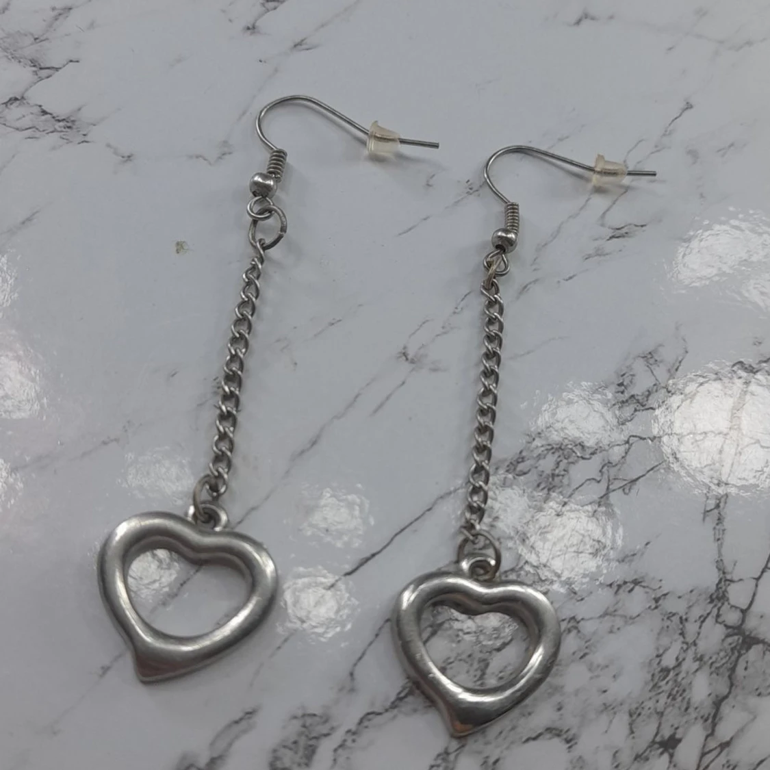 Det är ett par jätte fina silvriga hjärt örhängen. De har använts ungefär 2 gånger och är i mycket bra skick. Den är köpt för mer än vad priset är lagt på.