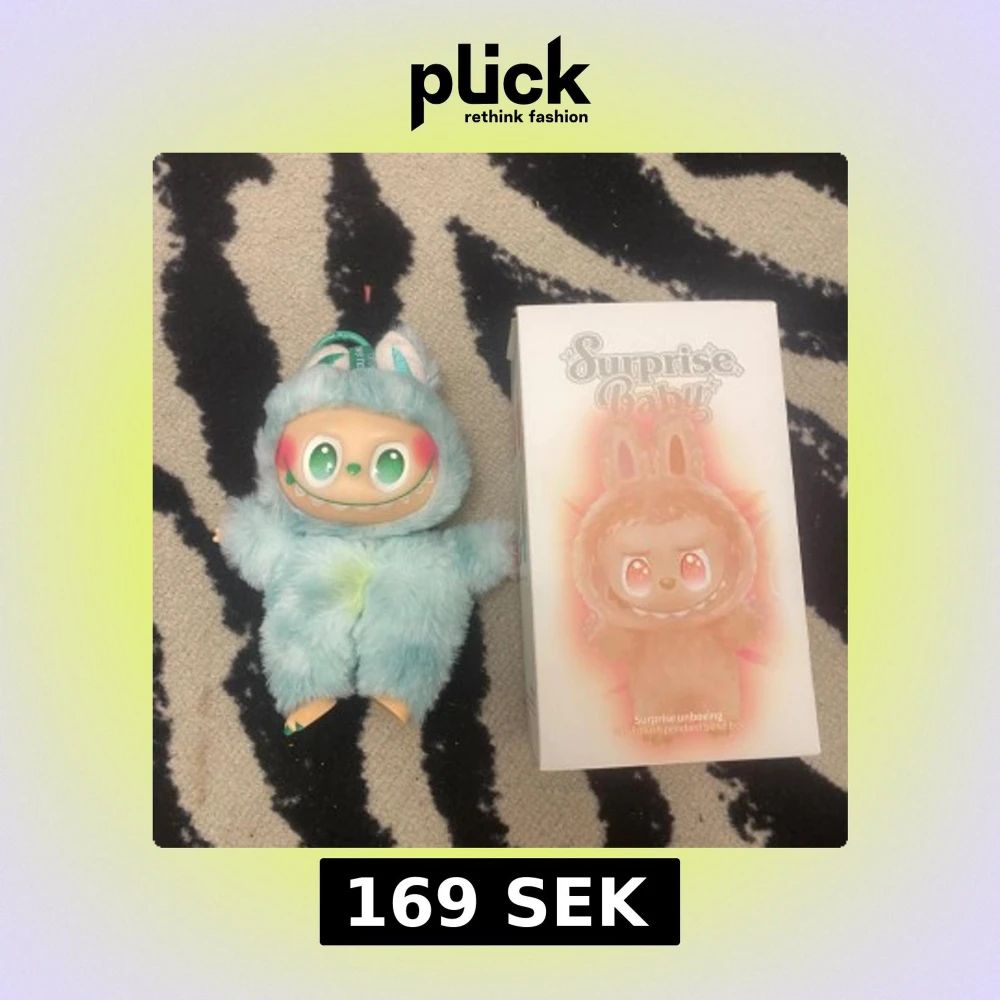 Söt Surprise Baby vinylfigur i mjuk blå dräkt med gröna ögon och rosa kinder. Levereras med originalförpackning. Figuren är i gott skick, med mindre missfärgning på magen. Perfekt som samlarobjekt eller present.
