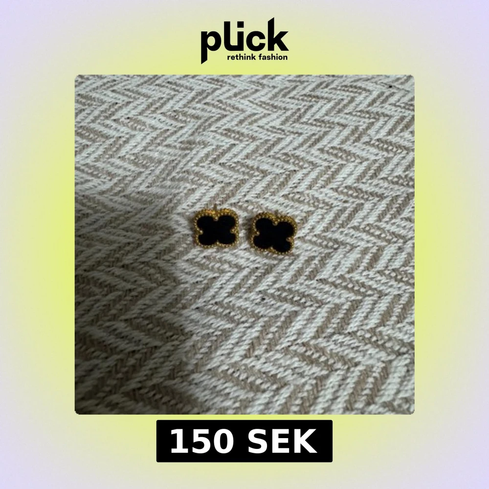 Snygga örhängen i fyrklöverform med svart mitt och guldfärgad kant. De har en elegant och trendig look med detaljerade kanter som ger extra lyxkänsla. Perfekta för att lyfta vilken outfit som helst.