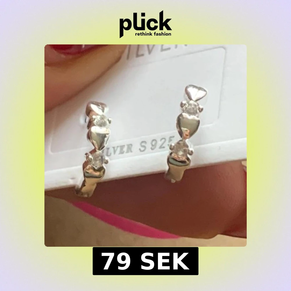 Snygga örhängen i äkta S925 silver med små hjärtan och gnistrande stenar. Designen är modern och söt, perfekt för dig som gillar detaljer. Hjärtana och stenarna sitter omlott längs hela örhänget och ger en glansig look.