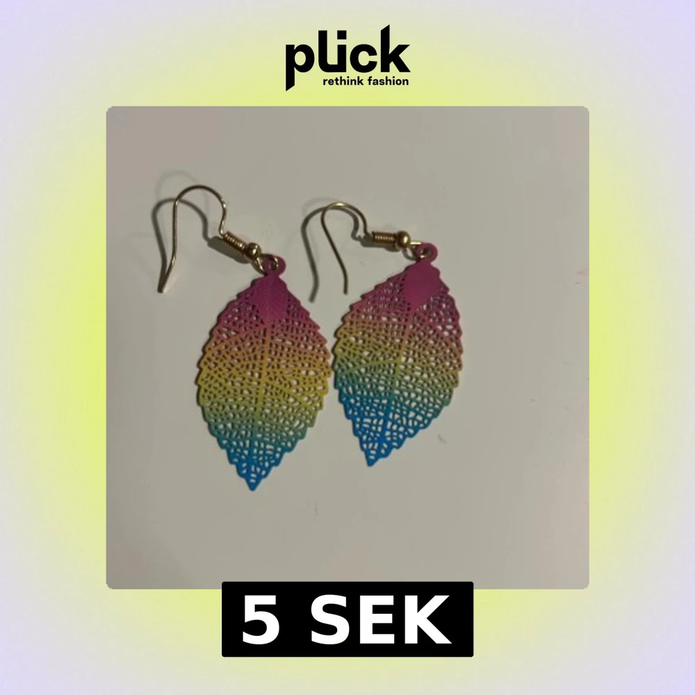 Snygga örhängen i form av blad med en vacker färgövergång från rosa till blått. Perfekta för att lägga till en färgklick till din outfit. Lätta och bekväma att bära hela dagen.Tvättar innan skickar.