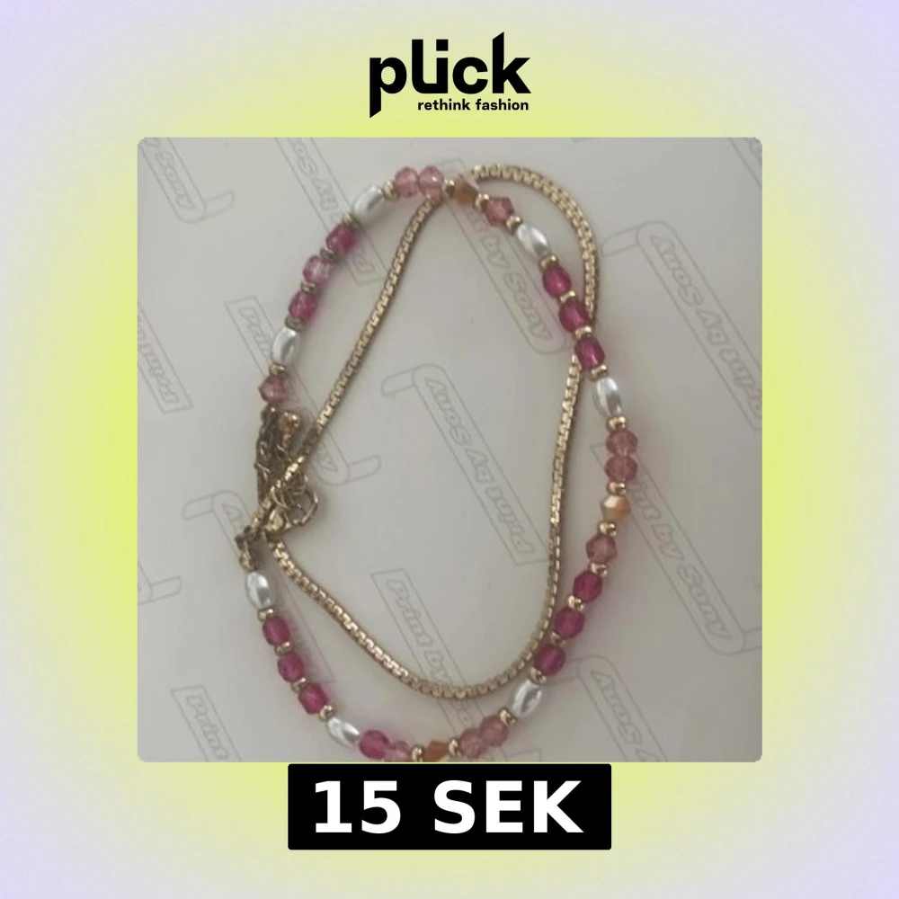 Snyggt armband med rosa och vita pärlor samt små guldfärgade detaljer. Kedjan är tunn och guldfärgad vilket ger en elegant touch. Perfekt för att lyfta din outfit med lite färg och stil. Säljer då den inte kommer till användning längre 💕
