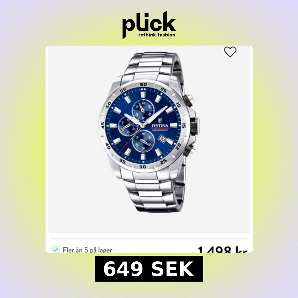 Snygg och stilren klocka från Festina med en blå urtavla och silverfärgad länk. Klockan har flera små urtavlor och en datumvisare, vilket ger den en sportig och modern look. Perfekt för den som vill ha en kombination av funktion och stil.