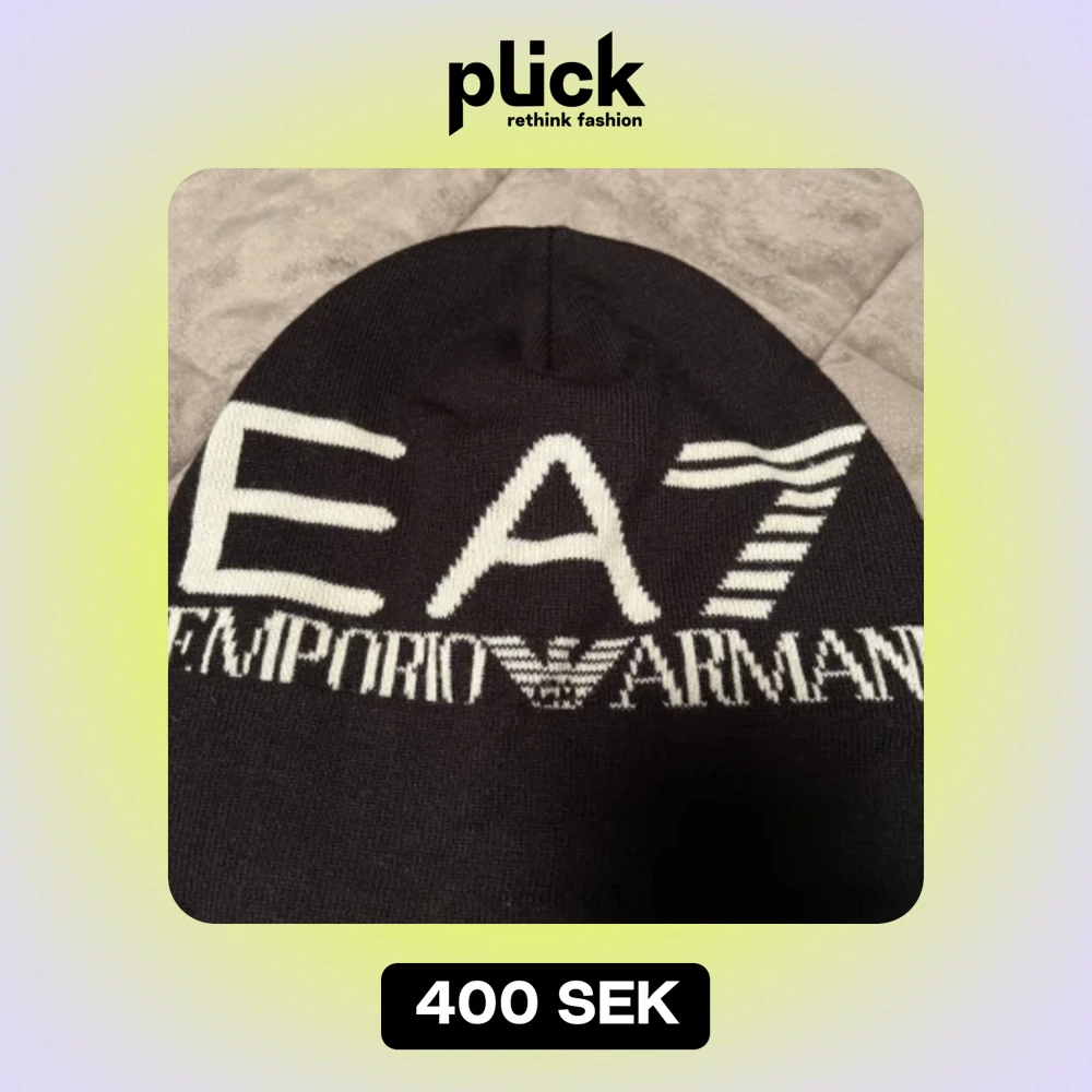 Säljer en snygg svart mössa från Emporio Armani med vit logga. Den är perfekt för att hålla dig varm och stilren under kalla dagar. Mössan är i ett mjukt och bekvämt material.köpt 2år sen typ använd typ 3-4gånger, slutsåld överallt!