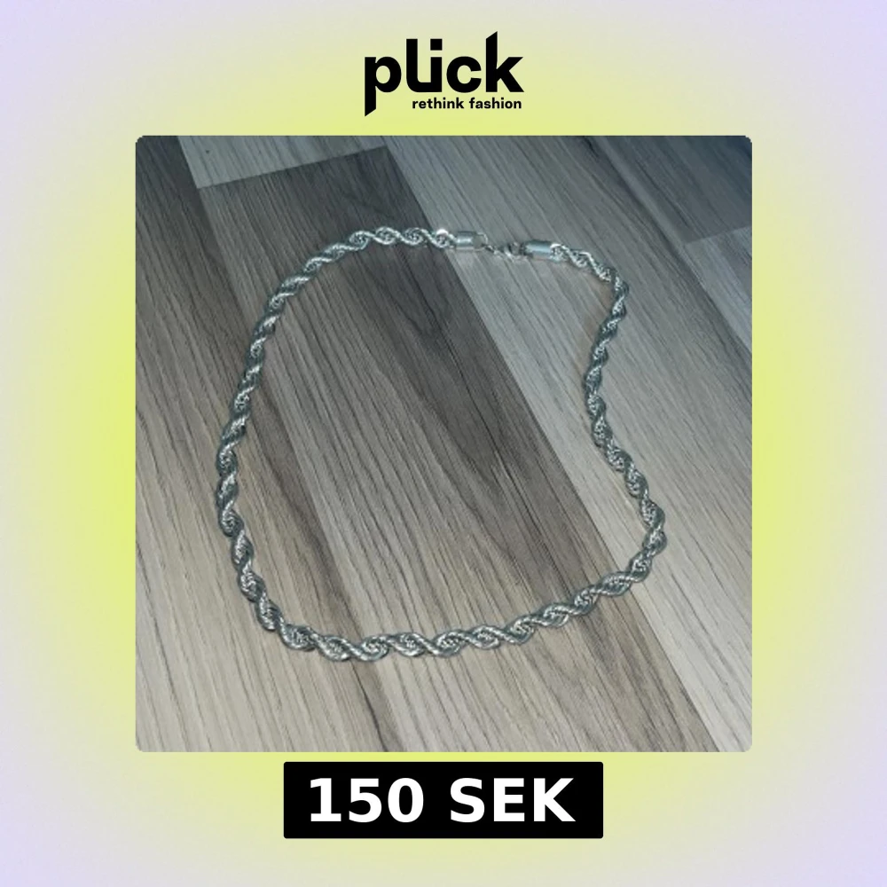 Säljer ett snyggt halsband i silver med tvinnad kedja. Perfekt för dig som gillar stilrena accessoarer med lite extra detalj. Lås i samma färg som kedjan. 8mm (pris kan diskuteras)
