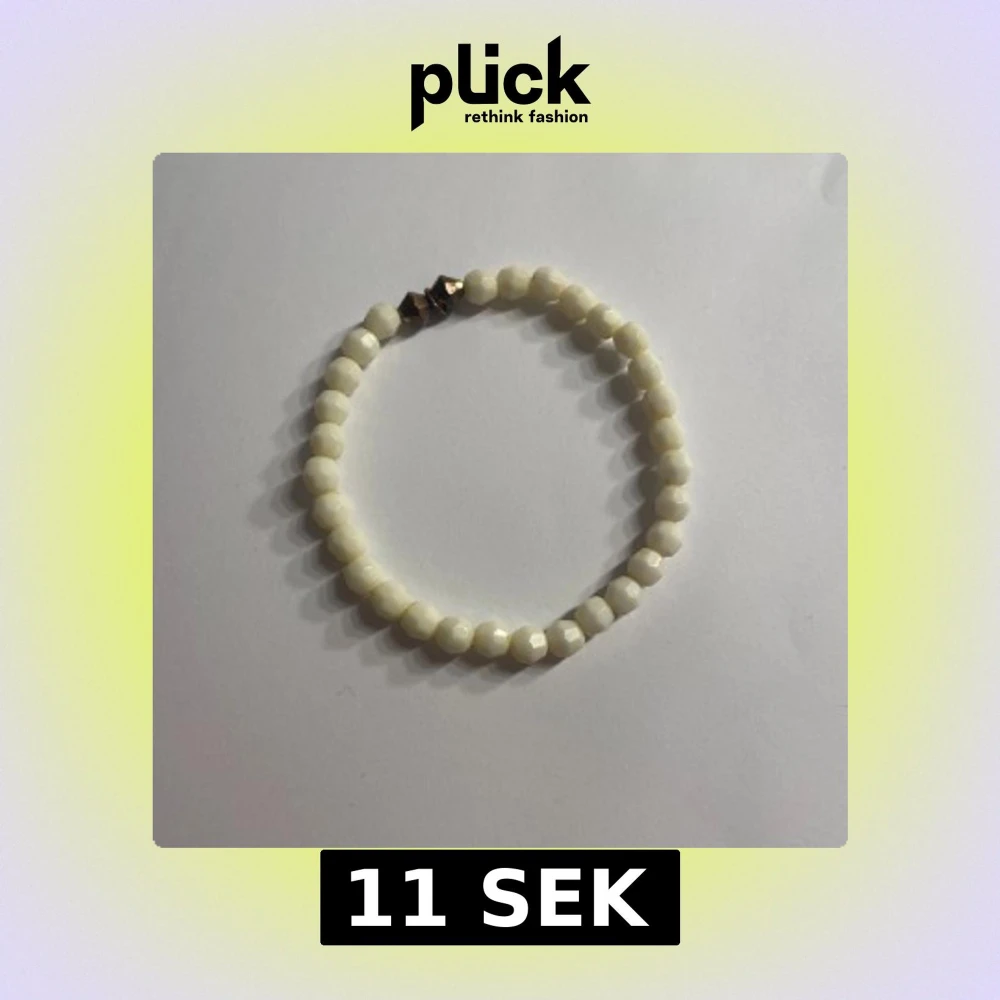 Säljer ett stilrent armband med vita pärlor och två små guldfärgade pärlor som detalj. Perfekt accessoar för att lyfta din outfit med en enkel men elegant touch.