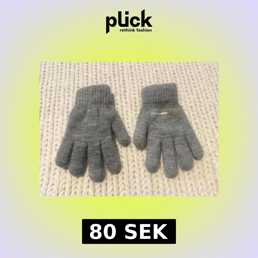 Säljer ett par grå stickade vantar med ribbad mudd och klassisk femfingrad form. Diskret Pure Storage-logga på ena vanten. Mjukt och flexibelt material som håller händerna varma under kyliga dagar. Perfekt för dig som gillar enkel och stilren design.