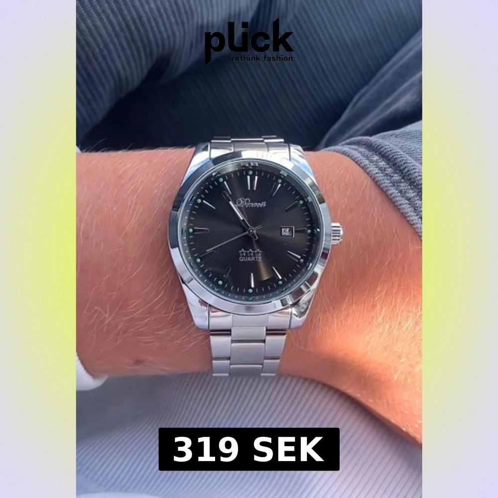 Stilren klocka från Donell med svart urtavla, datumvisning och silverfärgat armband i rostfritt stål. Klassisk rund form med tydliga indexmarkeringar och kvartsverk. Perfekt accessoar för dig som gillar en clean och tidlös look.