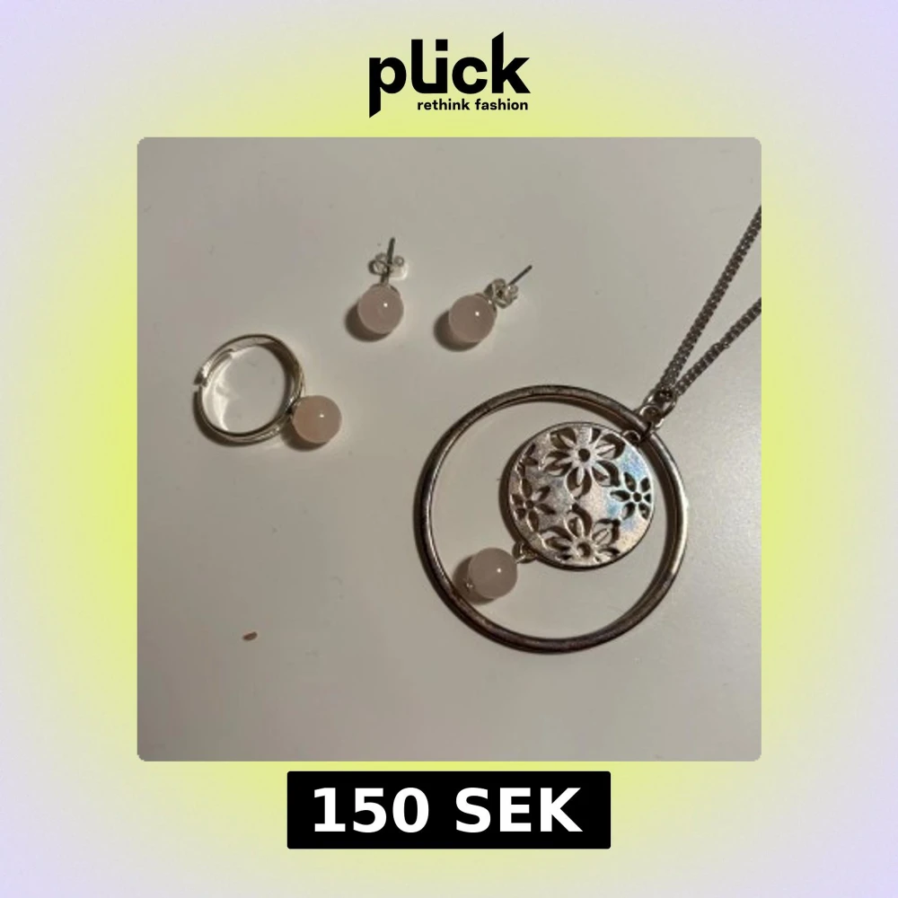 Elegant och matchande smyckeset med rosa detaljer. Använts två gånger, säljer pga att det ej är min stil längre. Skriv ifall du har frågor eller vill se fler bilder ❤️
