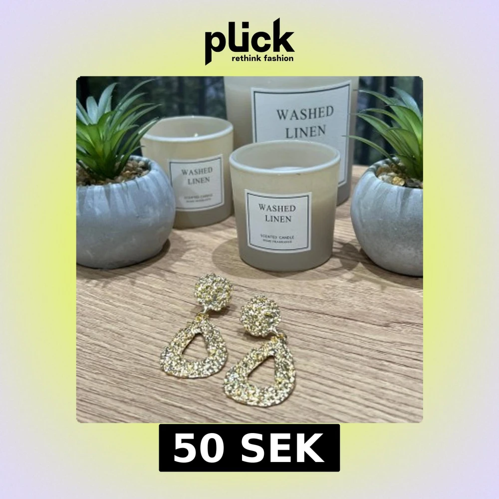 Snygga örhängen i guld med en unik, texturerad design. Perfekta för att ge en extra touch av glamour till din outfit. De har en droppformad hängande del som fångar ljuset vackert. 🌸
