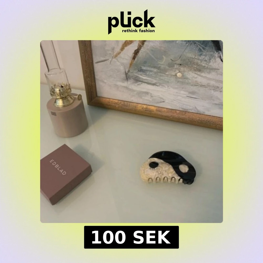 Snygg hårklämma i en stilren design med yin och yang-mönster i svart och beige. Perfekt accessoar för att hålla håret på plats med stil.