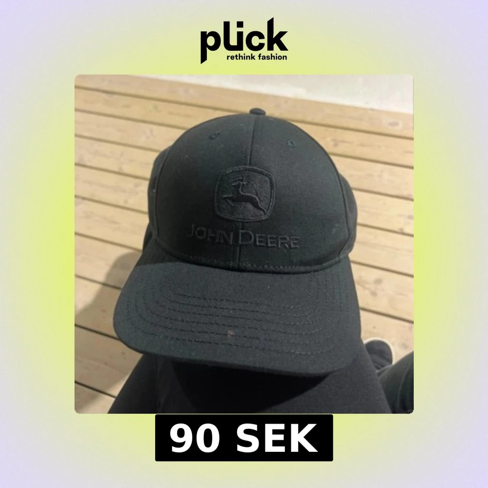 Säljer en svart keps från John Deere med snyggt broderat logotyp framtill. Klassisk böjd skärm och justerbar snapback baktill för perfekt passform. Kepsen är stilren och passar dig som gillar enkel design och vill ha ett coolt märke på huvudet.