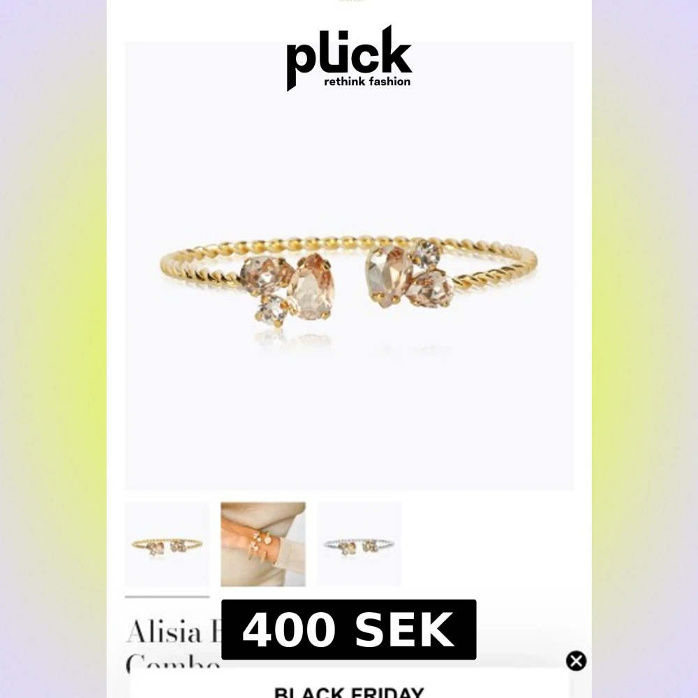 Exklusivt armband i guldton från Caroline Svedbom med tvinnad design och stora gnistrande kristaller i champagnefärg och klara stenar. Armbandet har en öppen form och är perfekt för dig som vill sticka ut med elegans och glans. Ny skick Nypris är 795kr