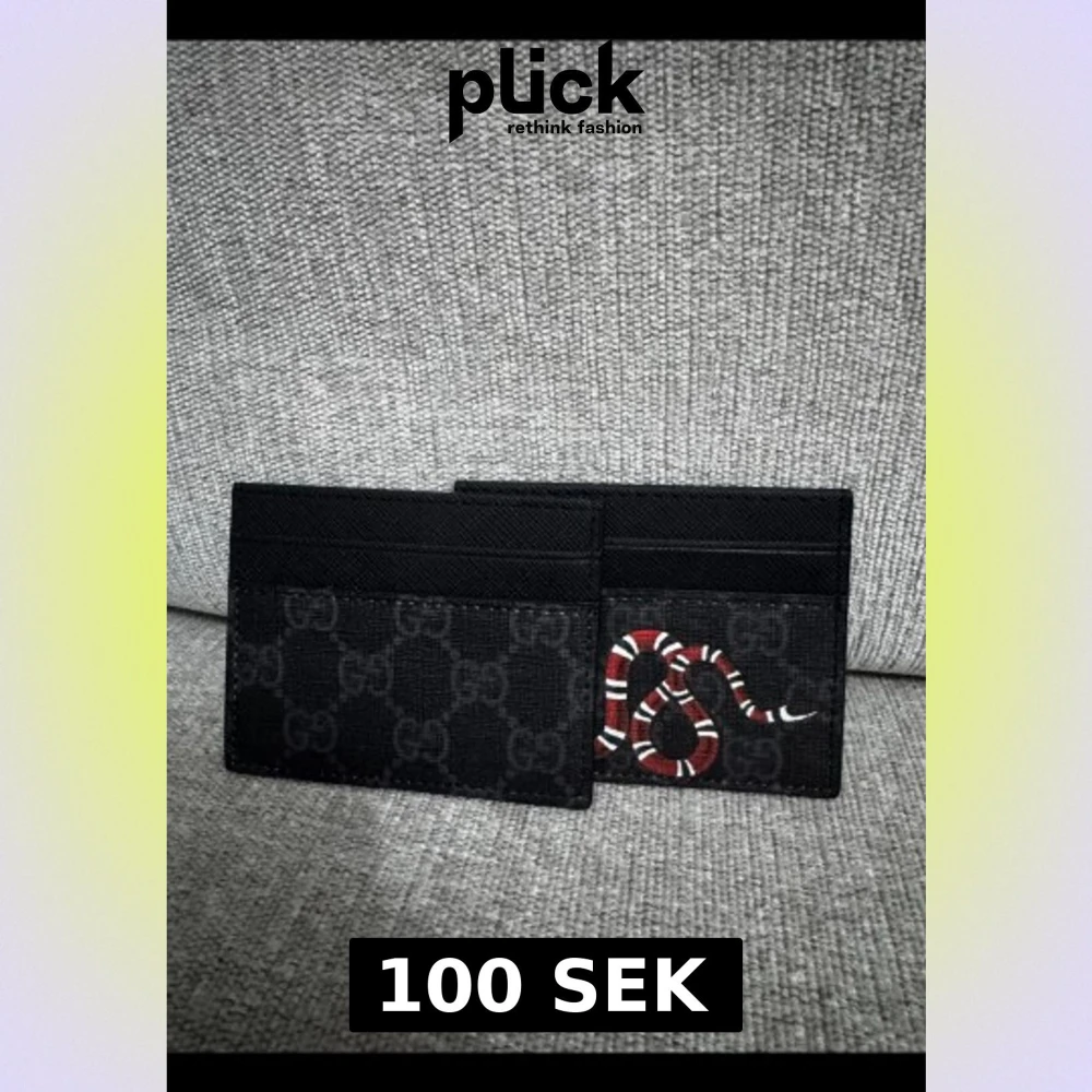 Snygg svart plånbok från med klassiskt GG-mönster och en cool röd och vit ormprint på ena sidan. Slimmad design med flera fack för kort, perfekt att ha i fickan. Materialet är slitstark syntet med exklusiv känsla.