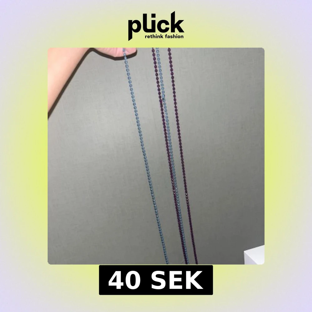 2 st långa halsband i blå och lila. 2 för 40kr eller 20kr styck