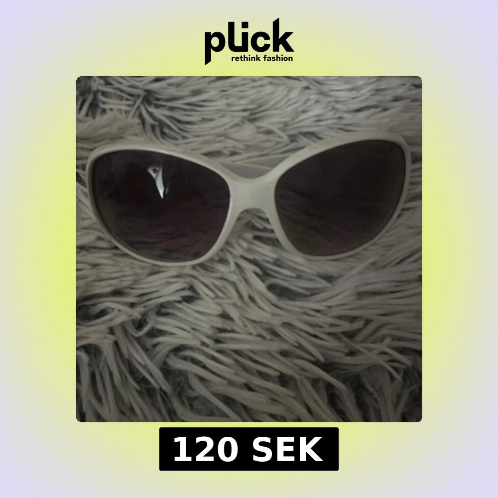 Snygga vita solglasögon med stora, rundade bågar och mörka glas. Perfekt accessoar för att sticka ut och ge en cool retrovibe till din look. Aldrig använd