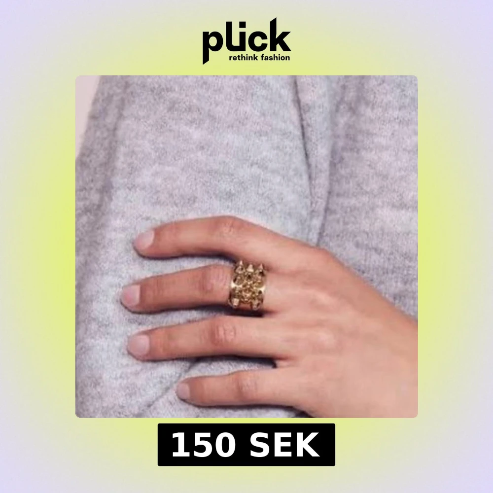 Cool och chunky guldfärgad ring med flera spetsiga nitar på ovansidan. Ringen har en bred design och glänsande finish som verkligen sticker ut. Perfekt accessoar för dig som vill ha en edgy och unik stil.