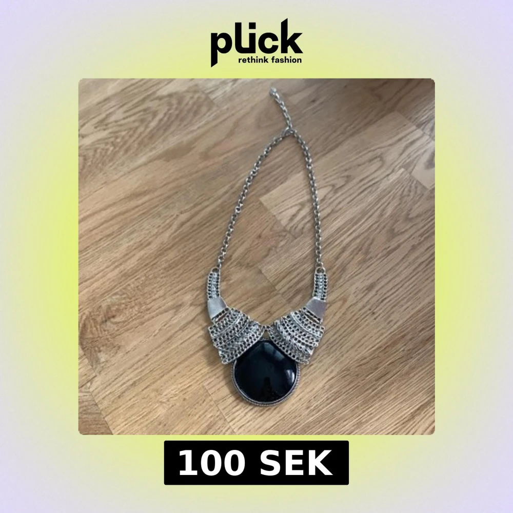 Unikt statement halsband i silverfärgad metall med en stor rund svart detalj i mitten. Kedjan är grov och dekorerad med flera lager av kedjor och mönstrade partier som ger ett coolt och edgy intryck. Perfekt för att lyfta vilken outfit som helst.
