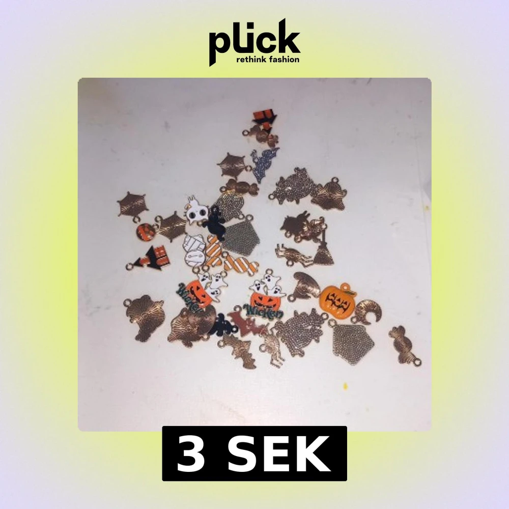 Ett mixat gäng halloweenberlocker i metall och emalj, perfekta till att göra egna smycken. Motiven är pumpor, spöken, fladdermöss, godis, häxhattar och spindelnät i färger som orange, svart, vitt och guld. Passar till halsband, armband eller örhängen.
