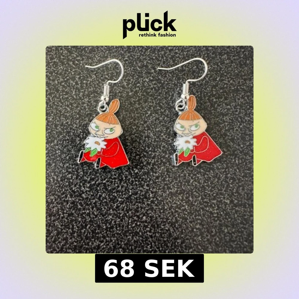 Charmiga örhängen med en tecknad karaktär i röd klänning och vit blomma. Perfekta för att ge en lekfull touch till din stil.