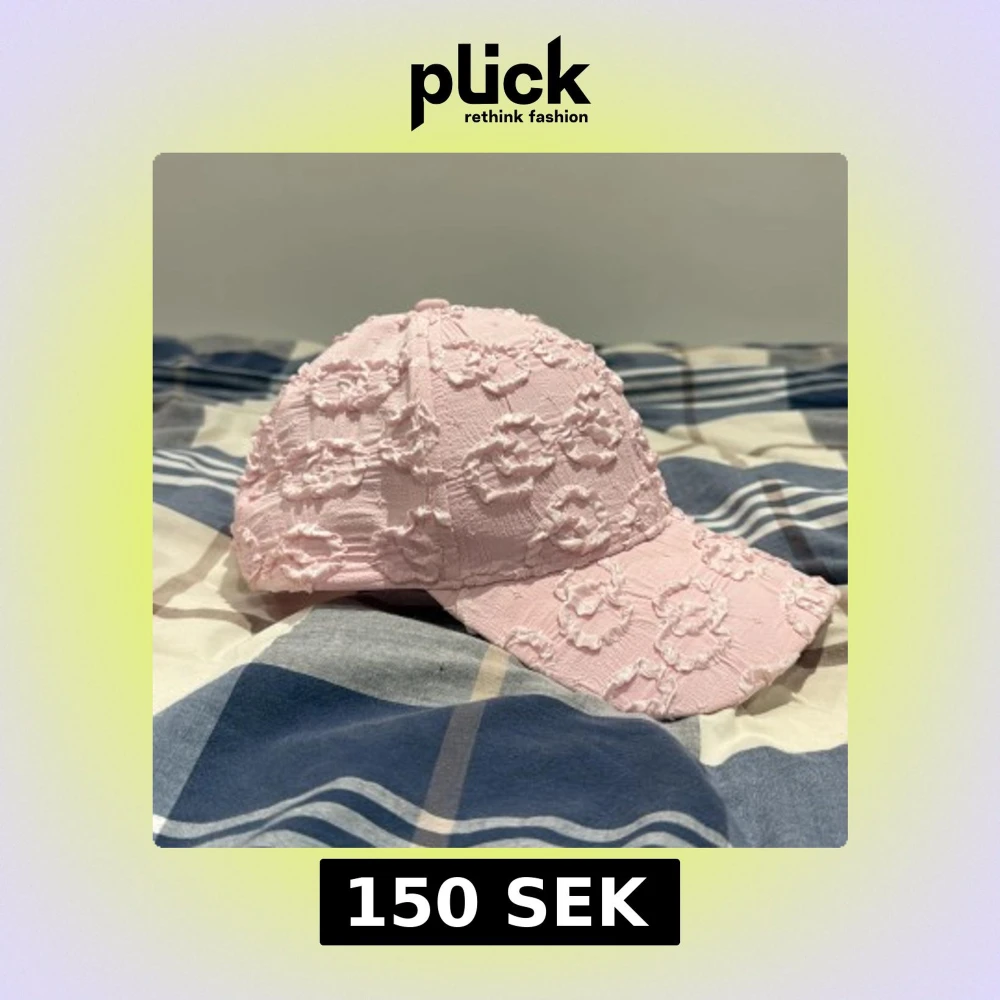 Säljer en ljusrosa keps med broderade blommor över hela ytan. Kepsen har böjd skärm och justerbar rem bak. Materialet är mjukt och strukturerat, vilket ger en unik look. Perfekt för dig som vill sticka ut med en söt och trendig accessoar.