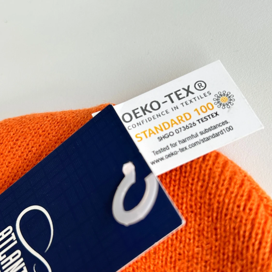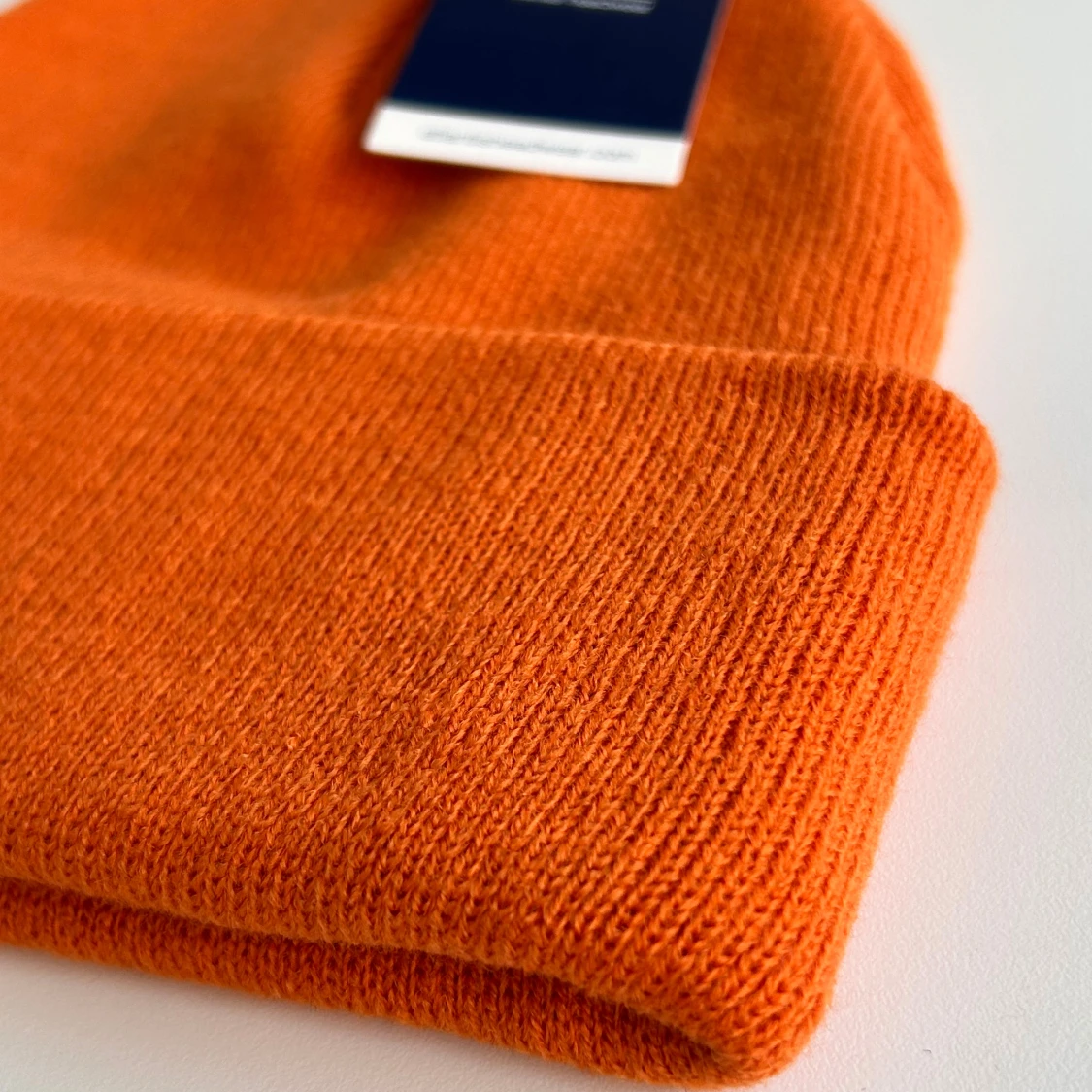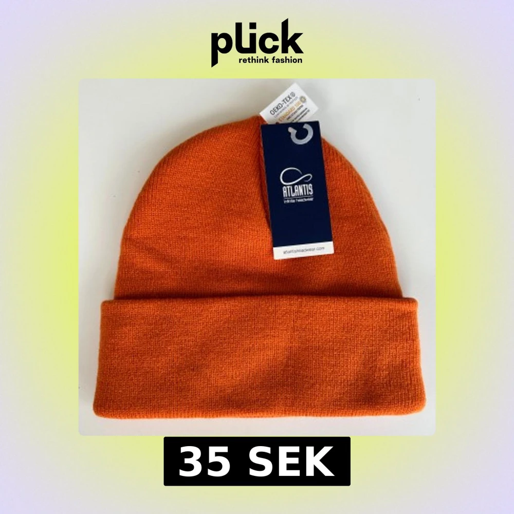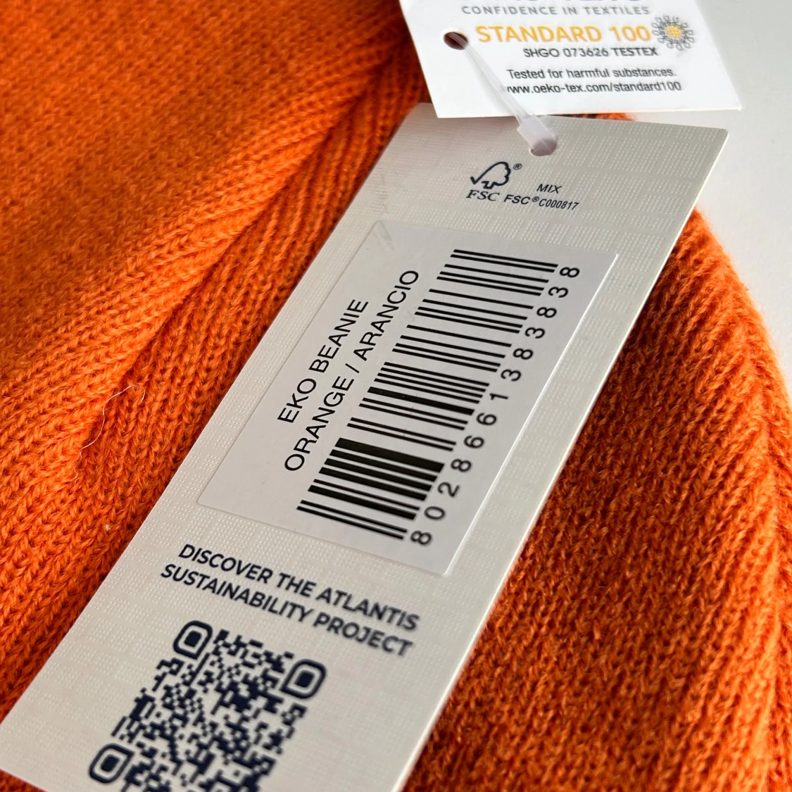 Snygg orange beanie från Atlantis, tillverkad i mjukt stickat material. Mössan har klassisk form med uppvikt kant och är certifierad enligt OEKO-TEX Standard 100.