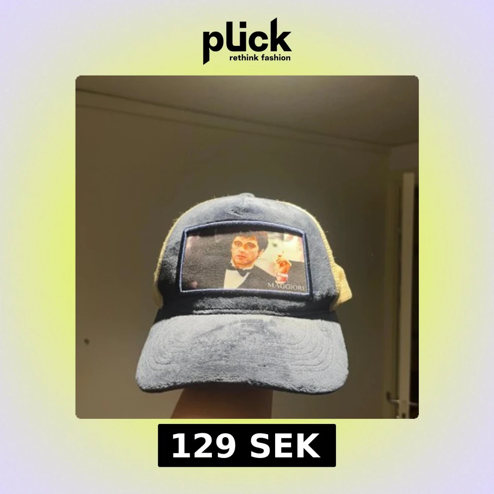 Snygg truckerkeps från Maggiore med mörkblå front och beige mesh baktill. Framsidan har ett stort tryck med motiv och Maggiore-logga. Kepsen har böjd skärm och justerbar passform. Perfekt för dig som vill sticka ut med en unik accessoar.