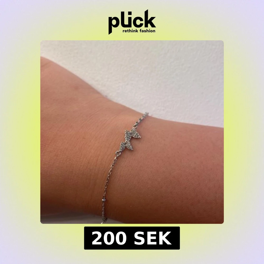 Superfint armband i silverfärg från Vinstella med en tunn kedja och två glittriga fjärilar i mitten. Armbandet har små gnistrande stenar som ger extra bling och en söt stjärndetalj vid låset. Perfekt accessoar för att lyfta din stil. Även äkta silver. Priset kan diskuteras.
